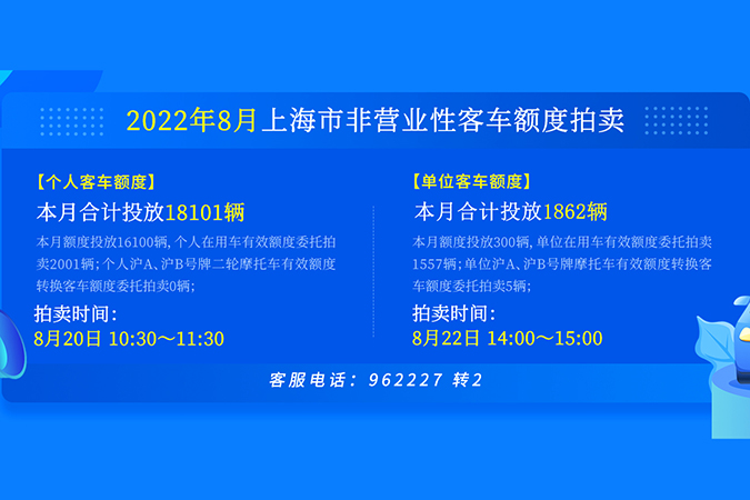 2022年7月上海拍牌时间是哪天,上海公司车牌拍卖时间,沪牌拍卖具体时间,沪牌拍卖警示价以及沪牌竞拍活动几点开始几点结束。7月拍牌时间,私牌拍卖时间定在7月23日上午举行,公牌拍卖时间定在7月25日下午举行。个人投放额度17194辆,单位投...